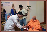Yogvivek Swami applying chandlo to the players |