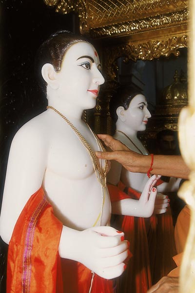 Swamishri performs the murti-pratishtha rituals amidst chanting of Vedic mantras