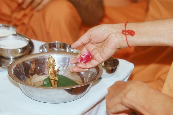 ... bathes Shri Harikrishna Maharaj with panchamrut