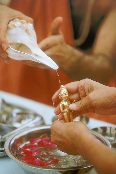 ... bathes Shri Harikrishna Maharaj with panchamrut