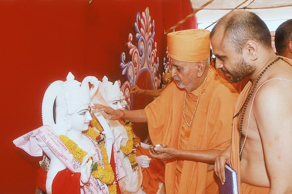 During the murti-pratishtha yagna of Junagadh Mandir Swamishri also performs the murti-pratishtha rituals of murtis for six other BAPS hari mandirs