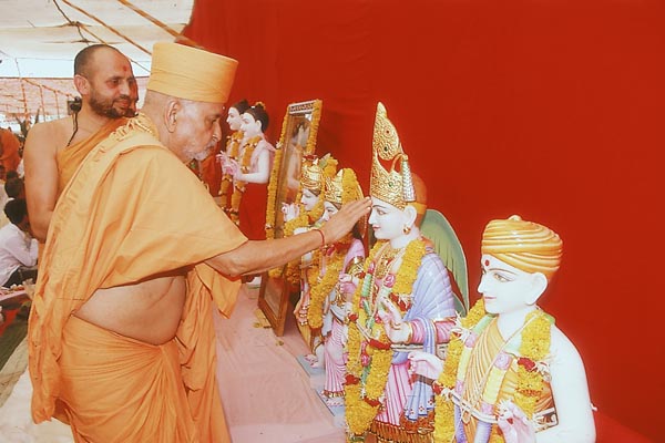 During the murti-pratishtha yagna of Junagadh Mandir Swamishri also performs the murti-pratishtha rituals of murtis for six other BAPS hari mandirs