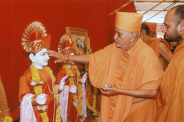 During the murti-pratishtha yagna of Junagadh Mandir Swamishri also performs the murti-pratishtha rituals of murtis for six other BAPS hari mandirs