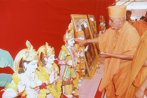 During the murti-pratishtha yagna of Junagadh Mandir Swamishri also performs the murti-pratishtha rituals of murtis for six other BAPS hari mandirs