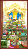 | Annakut offered to Thakorji | Fresh vegetables offered to Thakorji | |||||