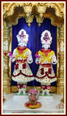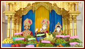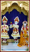 | Shri Ghanshyam Maharaj adorned with flowers | Shri Harikrishna Maharaj and Shri Radha-Krishna Dev adorned with flowers | |||||