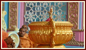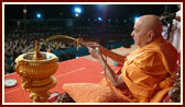 | Swamishri during pushpadolotsav assembly in the evening | ||||||