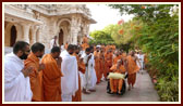 | Swamishri in the Smruti Mandir pradakshina | ||||||