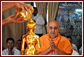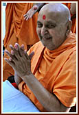 | Swamishri engaged in darshan of Shri Nilkanth Varni | Swamishri bids Jai Swaminarayan | |||||