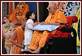 | Members of Bal Mandal present their performance during Swamishri's morning puja | ||||||