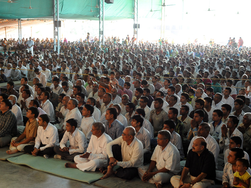 Devotees engaged in Swamishri's puja darshan