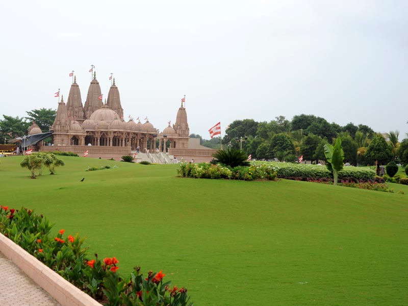 Lush grounds of BAPS Shri Swaminarayan Mandir, Sankari